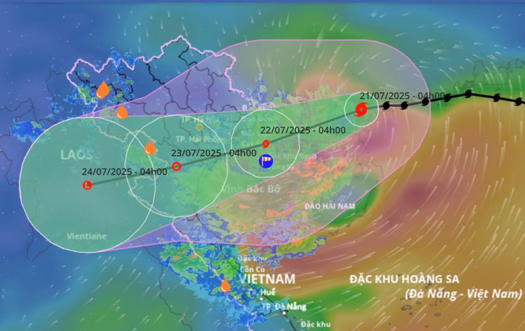 Dự báo trong ngày và đêm nay (21/7), bão di chuyển chậm với tốc độ khoảng 15km/h, vượt qua bán đảo Lôi Châu và đi vào vịnh Bắc Bộ. Do mặt biển ấm trên vịnh Bắc Bộ, bão có khả năng mạnh trở lại, đạt cường độ cao nhất khoảng cấp 11, giật cấp 14. Ngày mai (22/7), bão đi vào đất liền nước ta. Do hướng di chuyển tây tây nam, vùng đổ bộ của bão có sự dịch chuyển xuống phía nam, trọng tâm là Hưng Yên – Thanh Hoá.