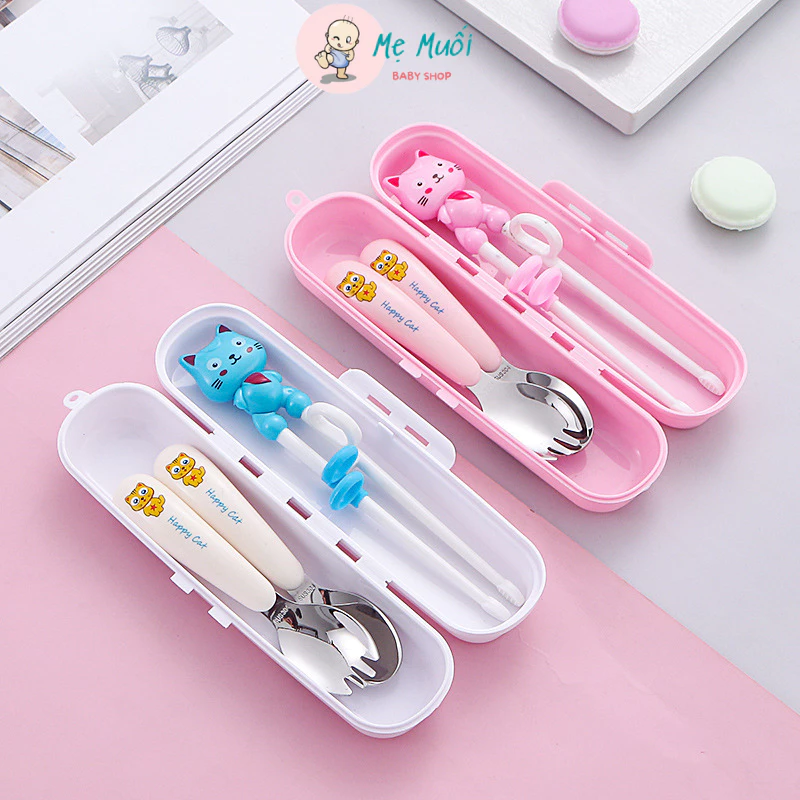 🔥 Thìa ăn dặm cho bé Bộ Thìa Dĩa Đũa Tập Ăn An Toàn Cho Bé Bằng Inox 304 Hình Con Mèo -Memuoibabyshop đang giảm giá!