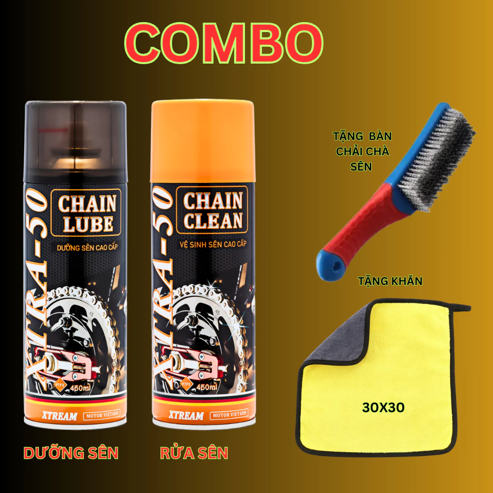🔥 [Tặng Bàn Chải 3D Hoặc Khăn Lau 3M]Bộ Combo Bôi Trơn Dưỡng Sên/ Xích Xtra-50, Vệ Sinh Sên 450 ml đang giảm giá!