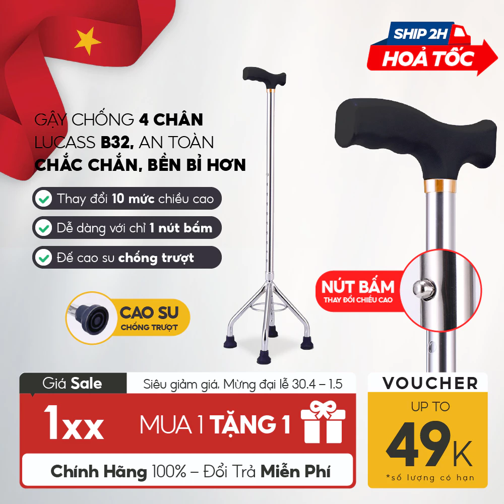 Nếu bạn đang tìm kiếm một gậy chống 3 chân phù hợp cho người già đi du lịch, thì Gậy chống 3 chân người già Lucass B26 là một lựa chọn tốt. Sản phẩm này được thiết kế với 10 mức chiều cao, giúp người sử dụng có thể điều chỉnh chiều cao phù hợp với nhu cầu của mình.