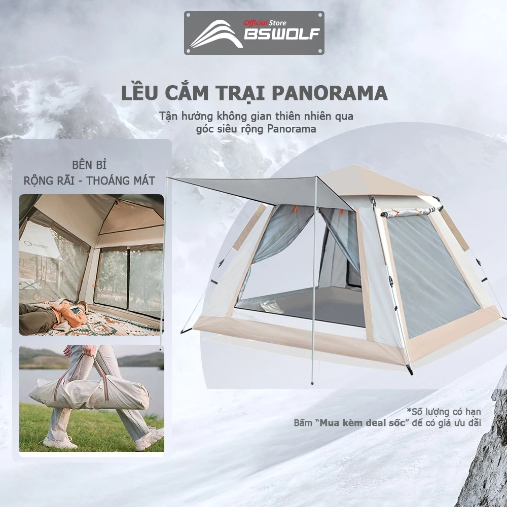 Lều Cắm Trại Tự Bung 4 Mái Lều Dã Ngoại Panorama Cho 4-6 Người Thông Thoáng Chống Nước Chống Nắng Hiệu Quả