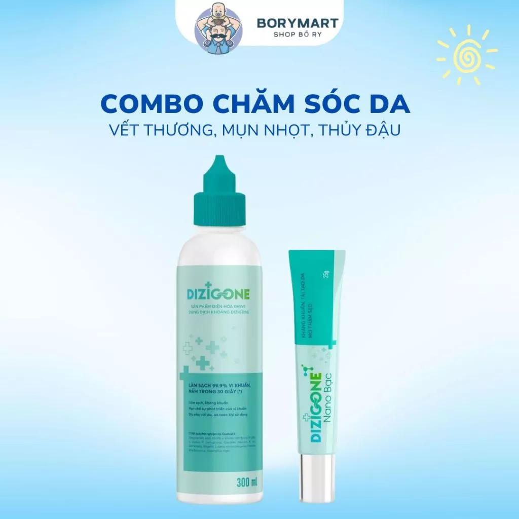 🔥 Combo Chăm Sóc Thủy Đậu, Tay Chân Miệng nhanh chóng Dung dịch kháng khuẩn DIZIGONE 300ml & Kem DIZIGONE Nano Bạc 25g đang giảm giá!