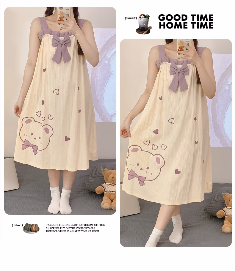 Tìm kiếm sự thoải mái đúng nghĩa với Đầm ngủ nữ dây nơ dễ thương cotton phong cách công chúa
