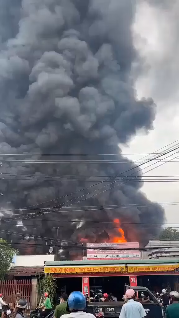 Một vụ hỏa hoạn nghiêm trọng đã xảy ra vào sáng ngày 17/7 tại một xưởng sơn nằm trên đường Tô Vĩnh Diện, thuộc phường Tân Khánh, thành phố Hồ Chí Minh. Đám cháy bùng phát bất ngờ vào khoảng 6h30 sáng, nhanh chóng lan rộng và bao trùm nhà xưởng chỉ trong vài phút. Ngọn lửa dữ dội kèm theo cột khói đen dày đặc bốc cao hàng trăm mét, có thể quan sát rõ từ xa. Sự việc càng trở nên nguy cấp khi đám cháy nằm gần khu dân cư đông đúc.